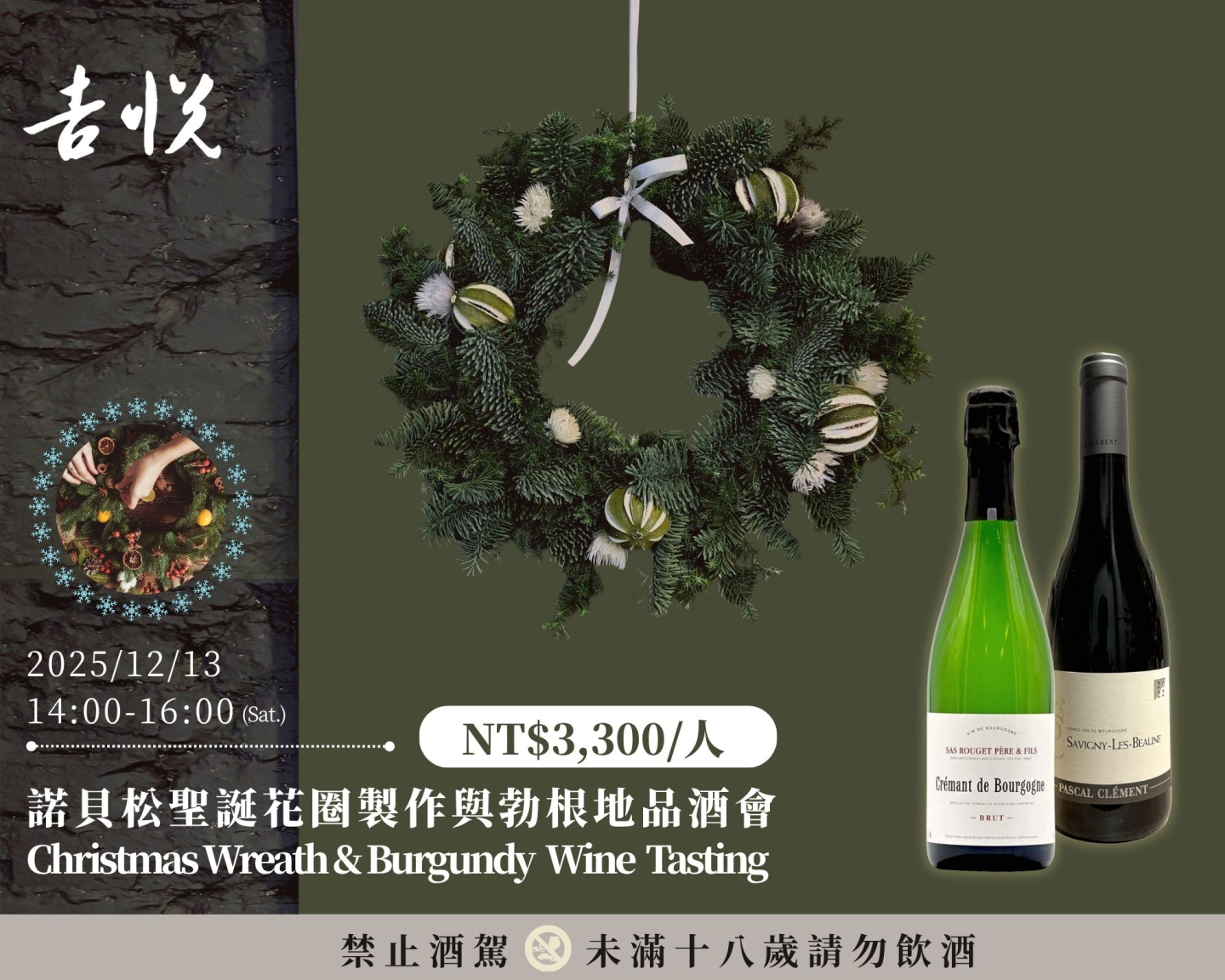 【諾貝松聖誕花圈製作與勃根地品酒會】
